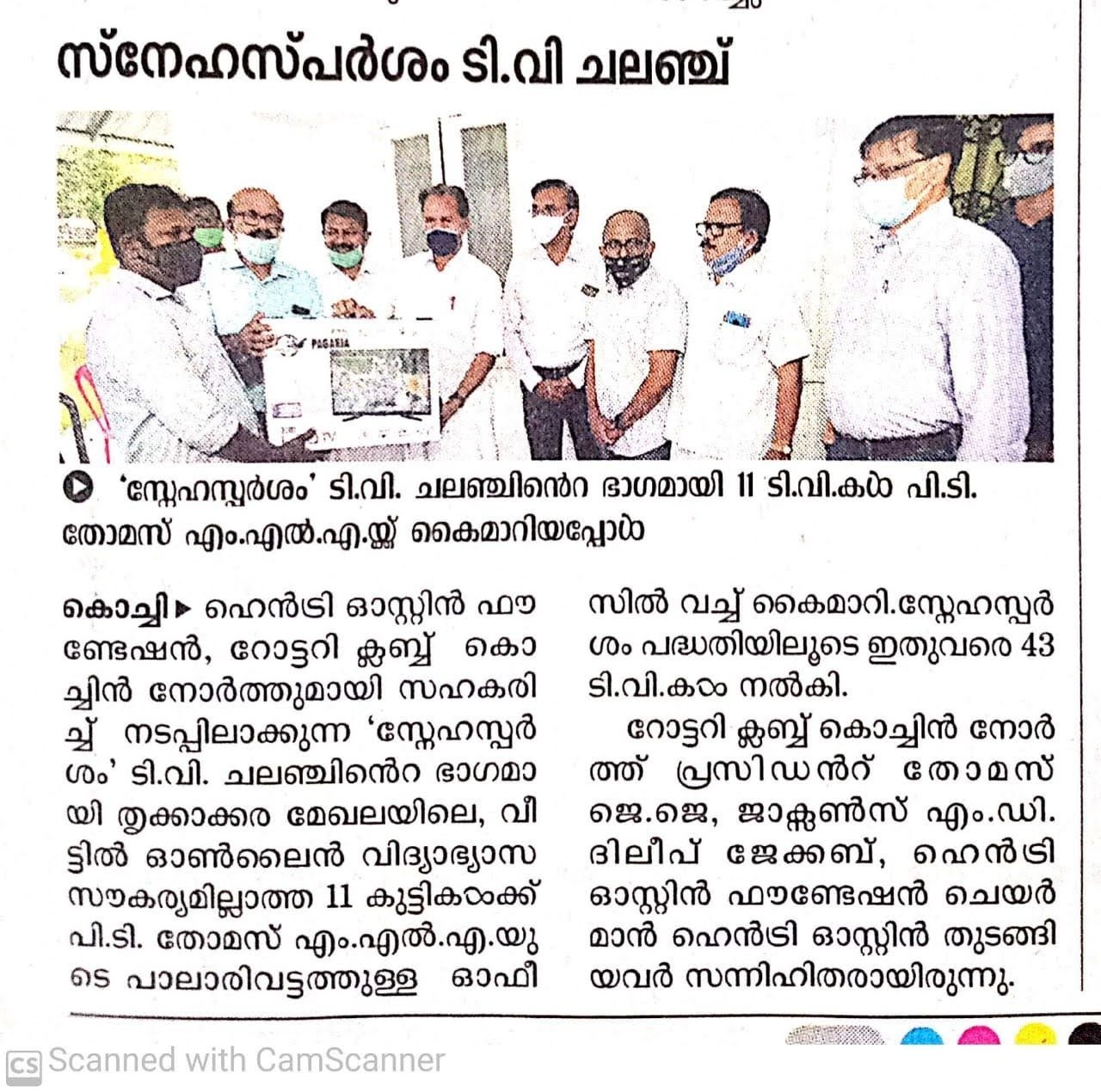 ‘സ്നേഹസ്പർശം’ ടി.വി – മൊബൈൽ പദ്ധതി വഴി 51 ടി.വി.കളും 3 മൊബൈൽ ഫോണുകളുമാണ് സുമനസ്സുകളുടെ സഹായത്തോടെ ഹെൻറി ഓസ്റ്റിൻ ഫൗണ്ടേഷൻ അർഹരായ വിദ്യാർത്ഥികൾക്ക് നൽകിയത് .